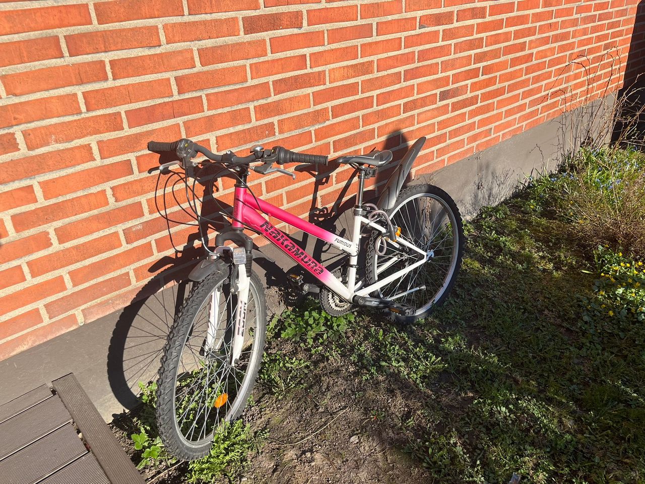 Pinkki valkoinen nakamura maastopyörä, pari vuotta vanha mutta harvoin käytetty 7 vaihteinen ja erittyisen helppo extra vaihde ylämäkien nousuun. Kumit kuin uudet.