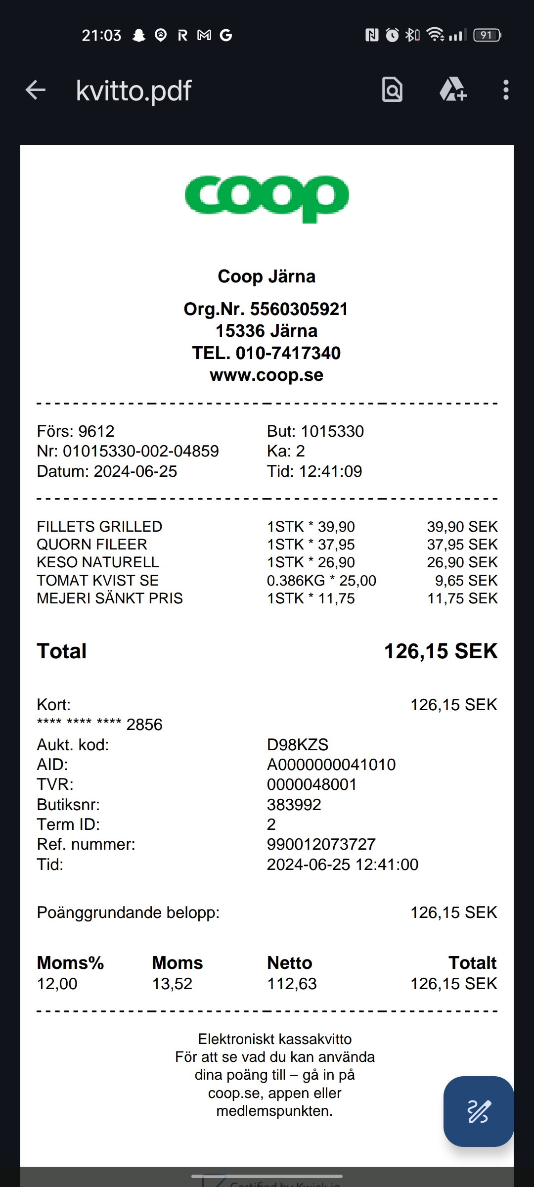 Olika kvitton