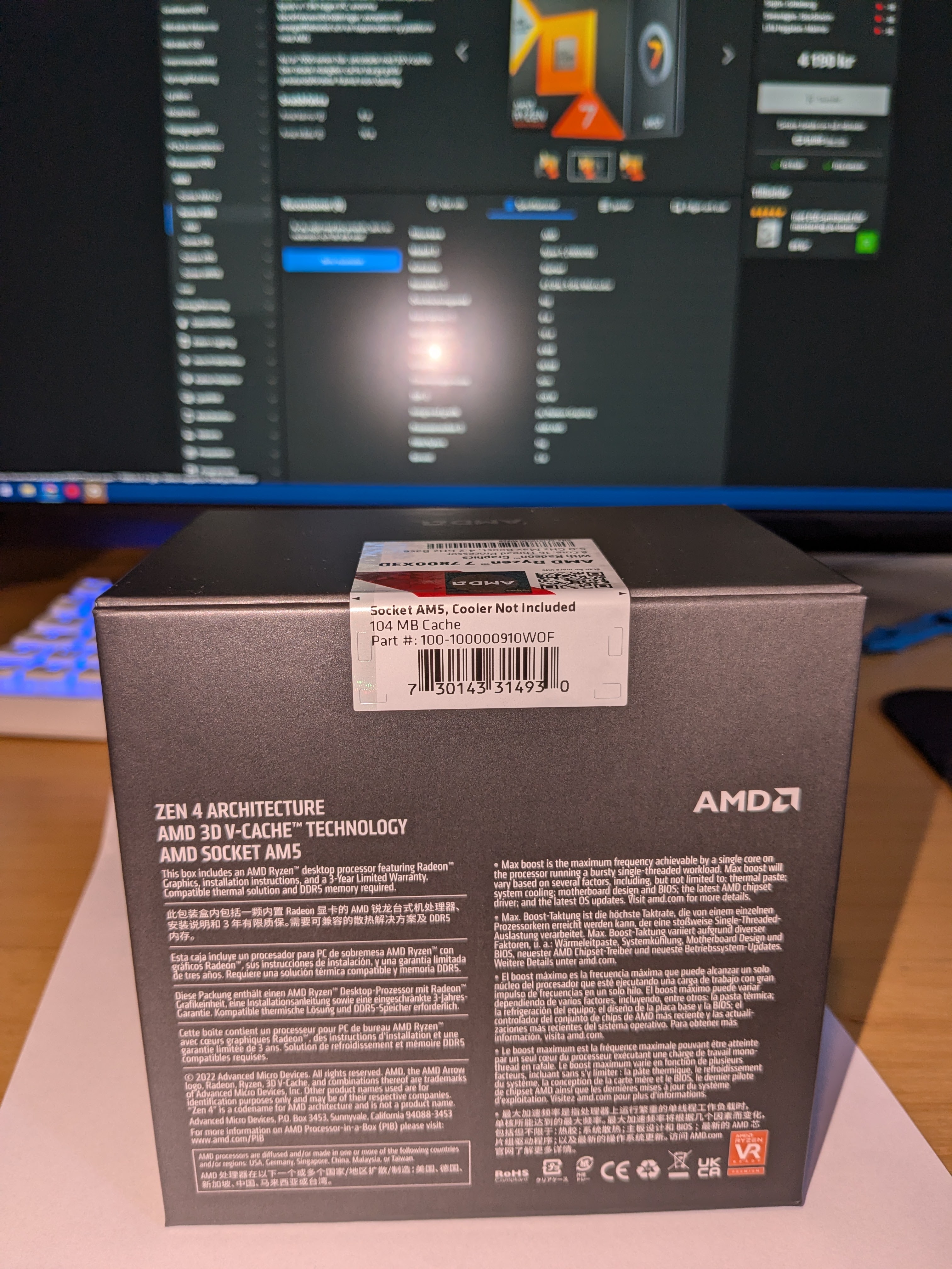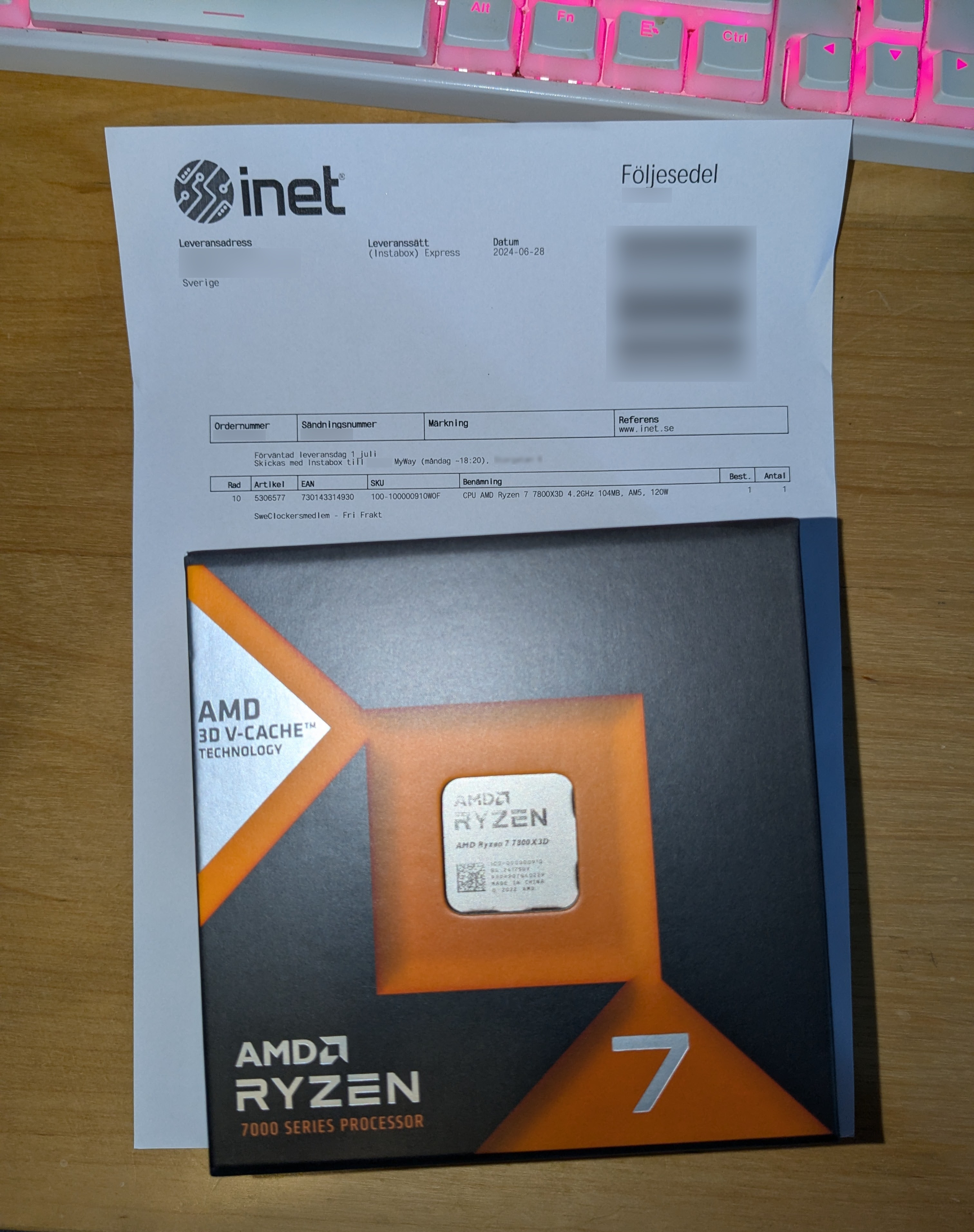 Helt ny oöppnad 7800X3D processor från AMD. Kvitto från Inet. Nypris ligger just nu på ~4200 kr
